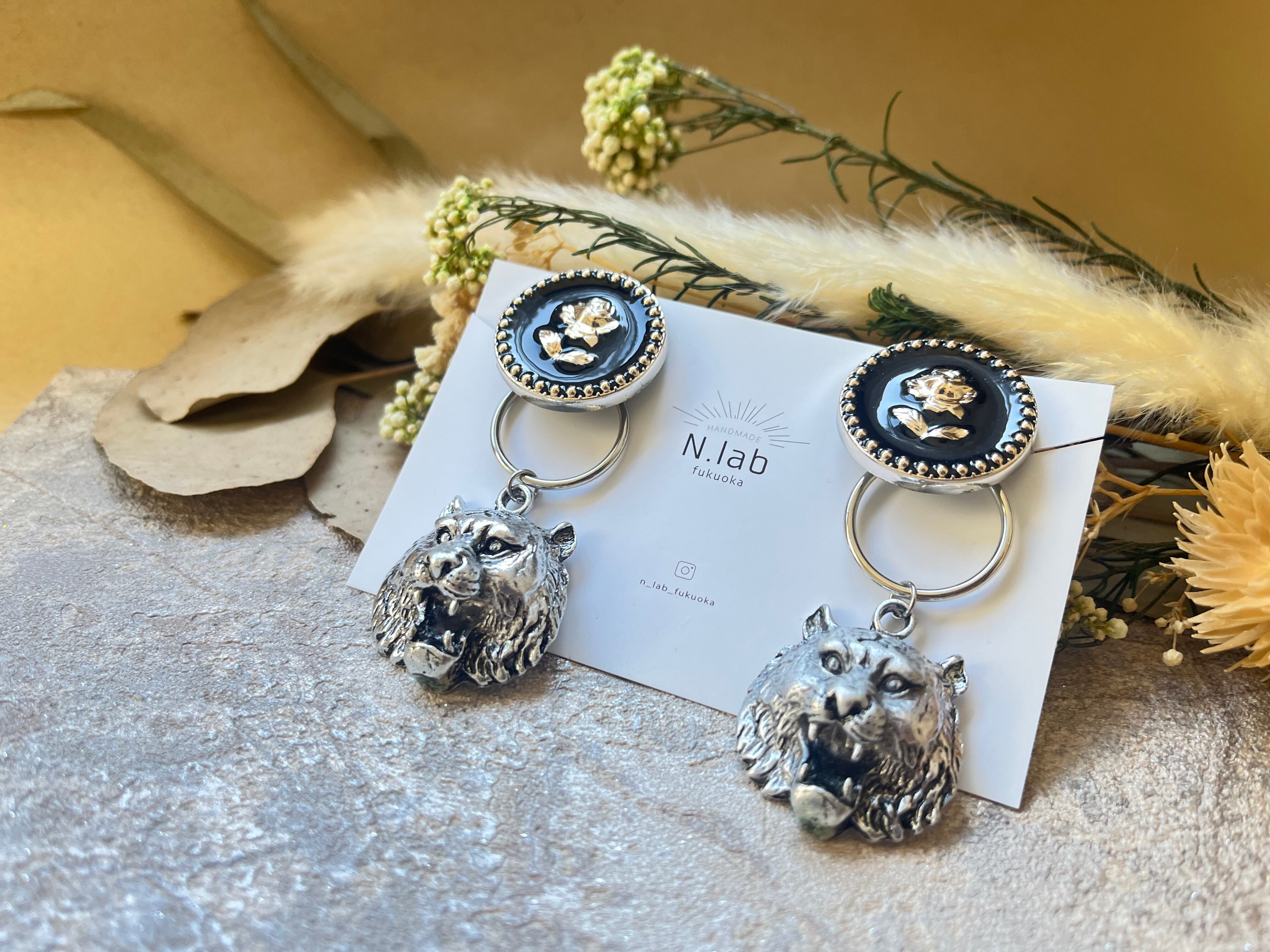 虎のチャームが目を引く、魅力的な3wayイヤリングです! 一つ一つ丁寧に仕上げられた虎のデザインは、あなたの耳元にユニークさをプラスし、日常のコーディネートに特別な個性を演出します。